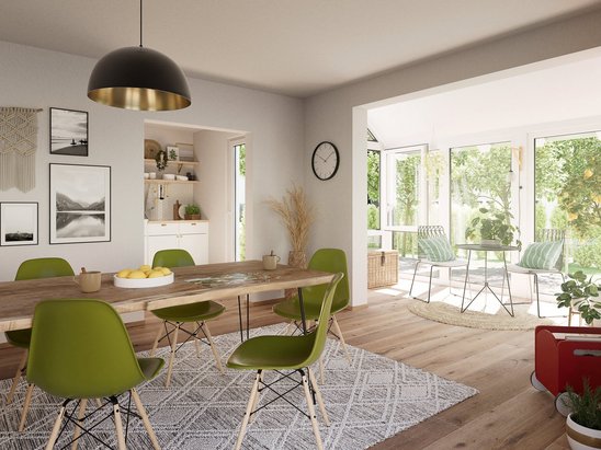 Das Bodensee 129 verströmt eine Atmosphäre der Gemütlichkeit und Großzügigkeit. Sein charmantes Satteldach und die variablen Grundrisse bieten viel Raum für individuelles Wohnen. Das lichtdurchflutete Wohnzimmer, die angrenzende Essecke, und das geräumige Schlafzimmer im Dachgeschoss mit Ankleide schaffen eine Oase der Ruhe und des Wohlbefindens. Jeder Winkel dieses Hauses ist eine Einladung zum Genießen und Entspannen – ein wahrer Traum für jede Familie.