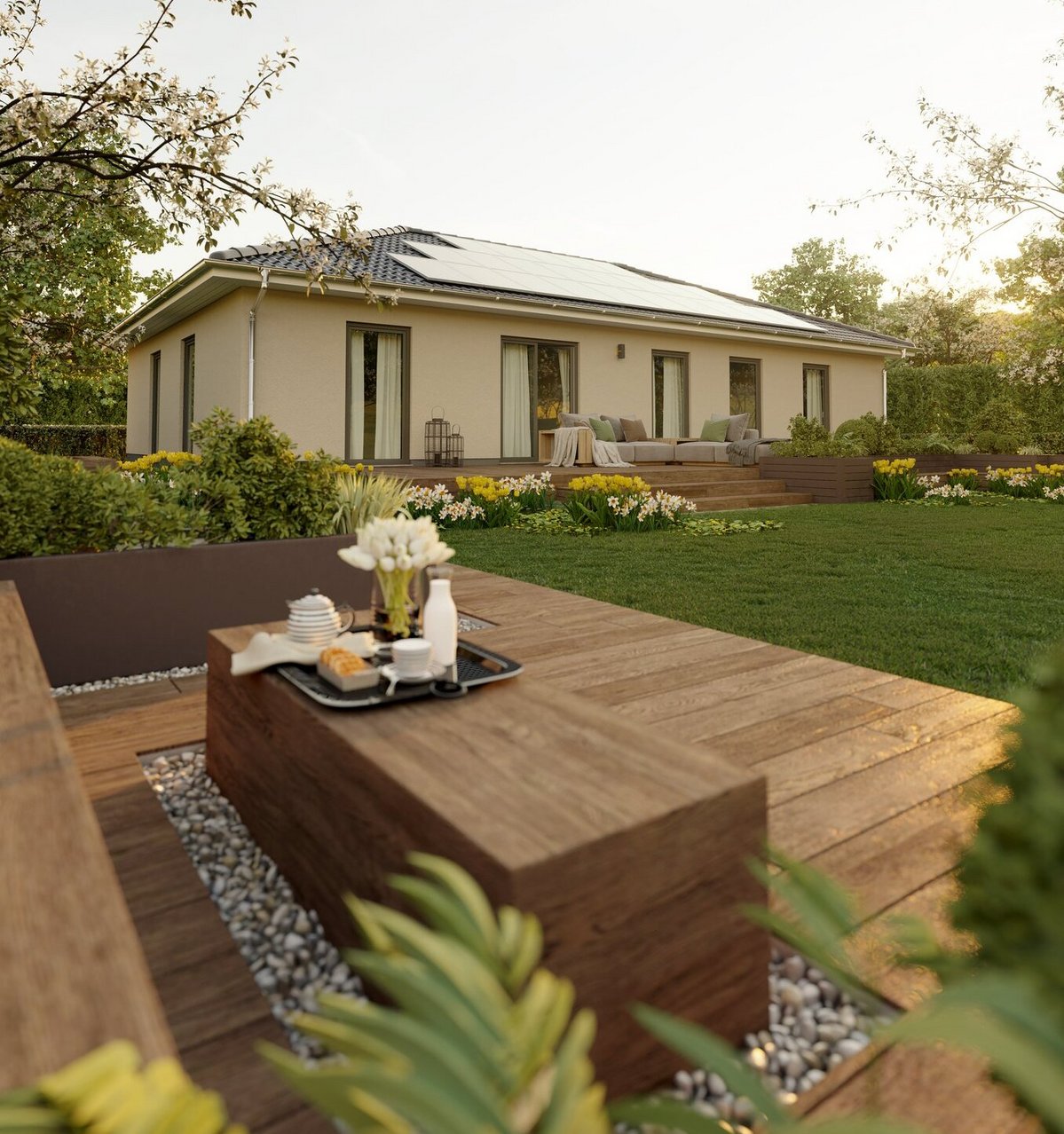Der Bungalow ist das richtige Haus für Sie, wenn Sie barrierefrei ebenerdig wohnen wollen. Direkter Zugang zum Garten, vielleicht ein für die Haustechnik ausgebauter Keller und weitläufige, offene Räume mit viel Licht zeichnen diesen Haustyp aus. Für Senioren ist das so praktisch wie für Familien mit kleinen Kindern oder Menschen mit Handicap.