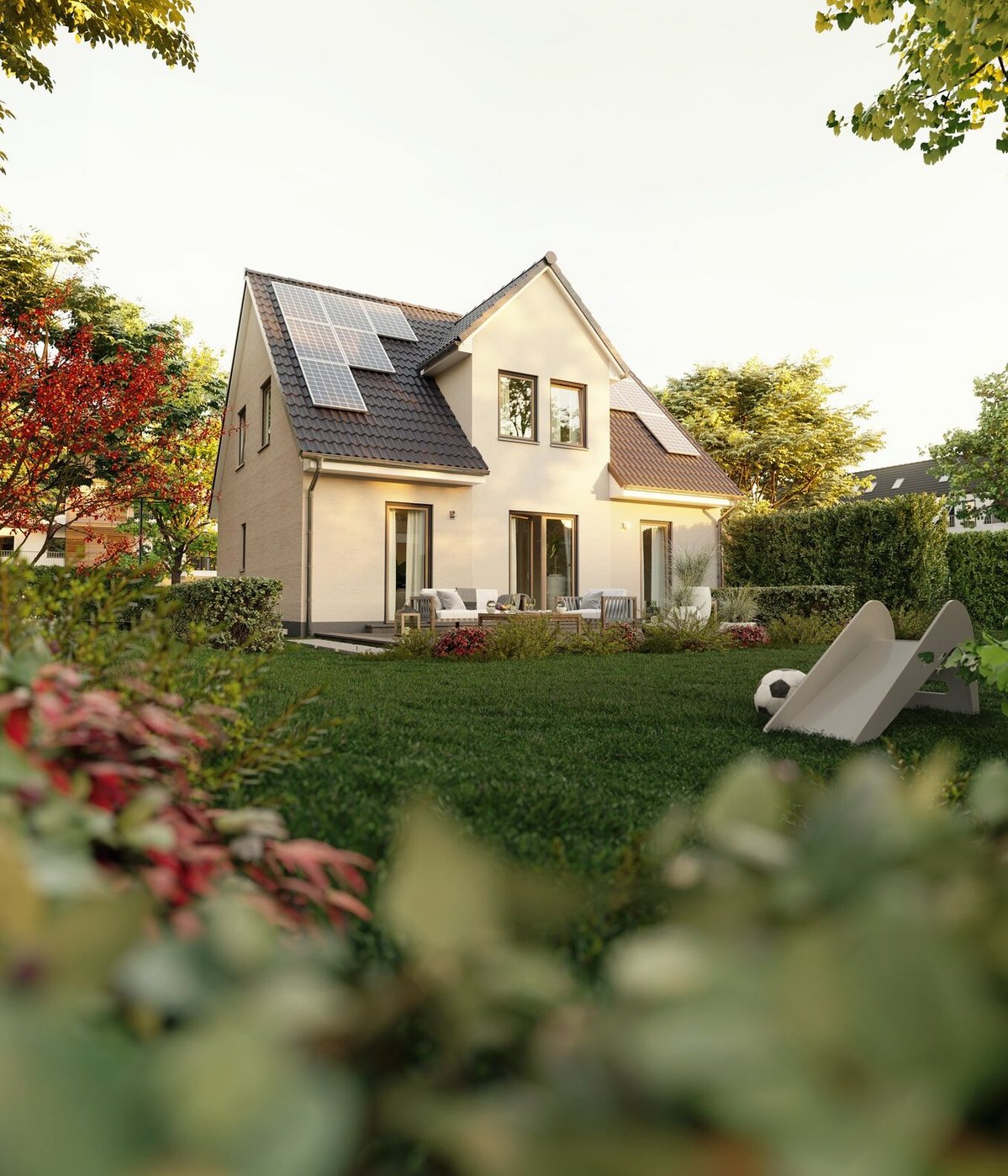 Ein weiterer wichtiger Punkt ist die Größe des Grundstücks. Eine wohlüberlegte Entscheidung bezüglich des tatsächlichen Flächenbedarfs kann zu Einsparungen führen. Überlegen Sie auch alternative Wohnkonzepte wie Doppelhaushälften oder Reihenhäuser, die weniger Grundfläche beanspruchen. Größere Grundstücke ziehen höhere laufende Kosten nach sich, darunter Steuern und Abgaben sowie Notar- und Grundbuchgebühren. Sie erfordern auch einen höheren Pflegeaufwand, insbesondere im Gartenbereich, was weitere Kosten und zeitlichen Aufwand bedeutet. Ein kleiner, pflegeleichter Garten kann besonders im späteren Lebensalter vorteilhaft sein.