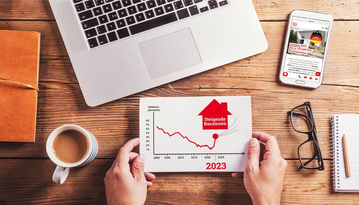 In unserer Grafik sehen Sie, dass Ihnen keiner sagen kann, wie sich die Bauzinsen entwickeln. Aber eins ist klar, die Niedrigzinsphase liegt in der Vergangenheit. Unsere Empfehlung lautet deshalb: lieber jetzt statt später bauen. Lassen Sie sich nicht vom Zinsniveau abschrecken, sondern ergreifen Sie Chancen, die Ihnen geboten werden!